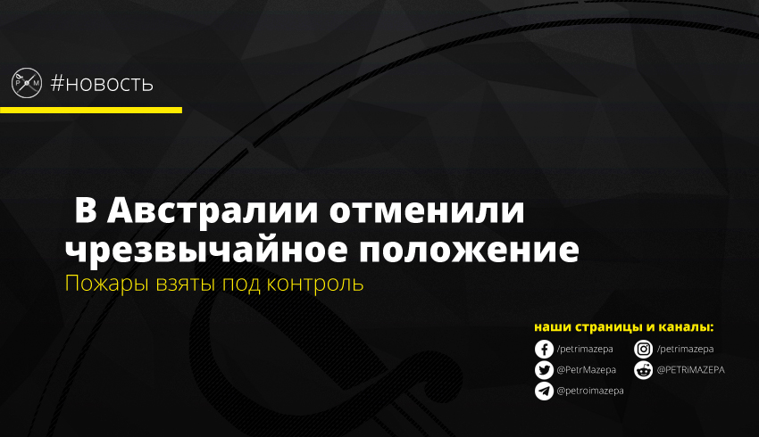 Власти Австралии отменили чрезвычайное положение, введенное из-за угрозы пожаров. Сообщается, что распространение огня около столицы Канберры было взято под контроль, а общая площадь возгорания уменьшается, однако ухудшение ситуации по мнению австралийских властей все еще возможно.