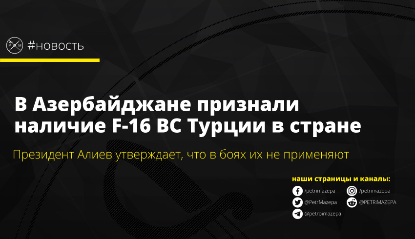 Президент Азербайджана Ильхам Алиев подтвердил, что на территории его страны находятся турецкие истребители F-16. Однако при этом он уточнил, что в боях эти истребители не участвуют.