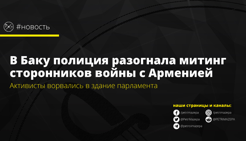 В Баку правоохранители разогнали участников массовой акции сторонников военного конфликта с Арменией. При этом полицейские применили водометы и слезоточивый газ. Задержаны десятки человек.