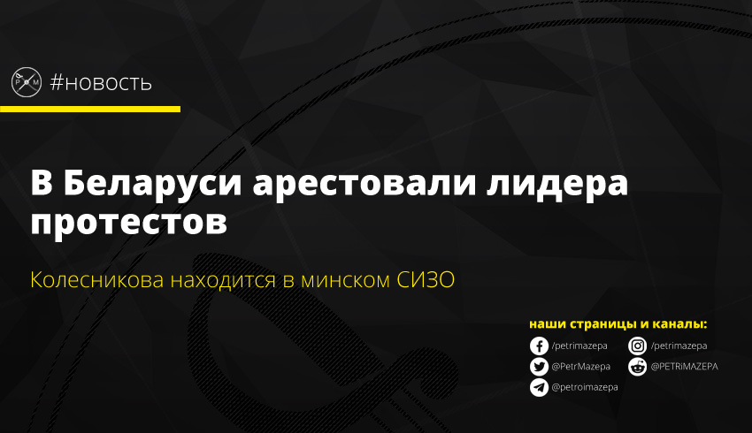 Сегодня стало известно, что лидера протестных акций в Беларуси Марию Колесникову арестовали и сейчас она находится в СИЗО № 1 на Володарского в Минске.