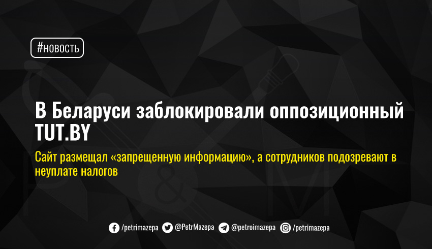 Мининформ Беларуси заблокировал TUT.BY, объяснив это «многочисленными фактами нарушений закона о СМИ в части размещения запрещенной информации». А против сотрудников издания открыли дело за уклонение от налогов