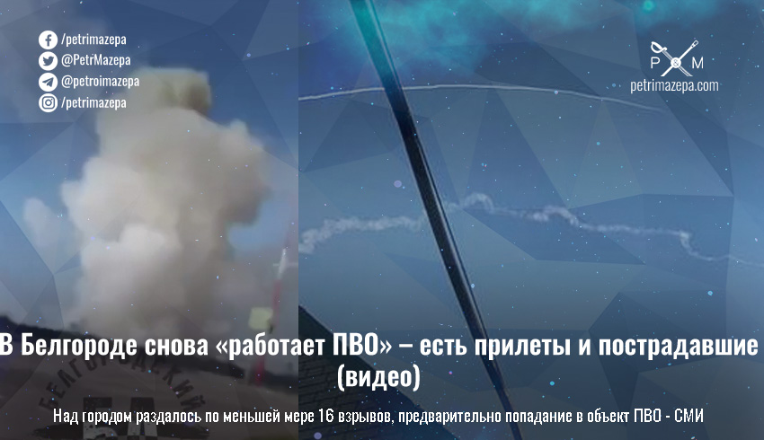 В Белгороде снова «работает ПВО» — в городе насчитали по меньшей мере 16 взрывов, есть прилеты, которые местные жители записали на видео. Также есть пострадавшие — трое россиян получили осколочные ранения, двое были госпитализированы.