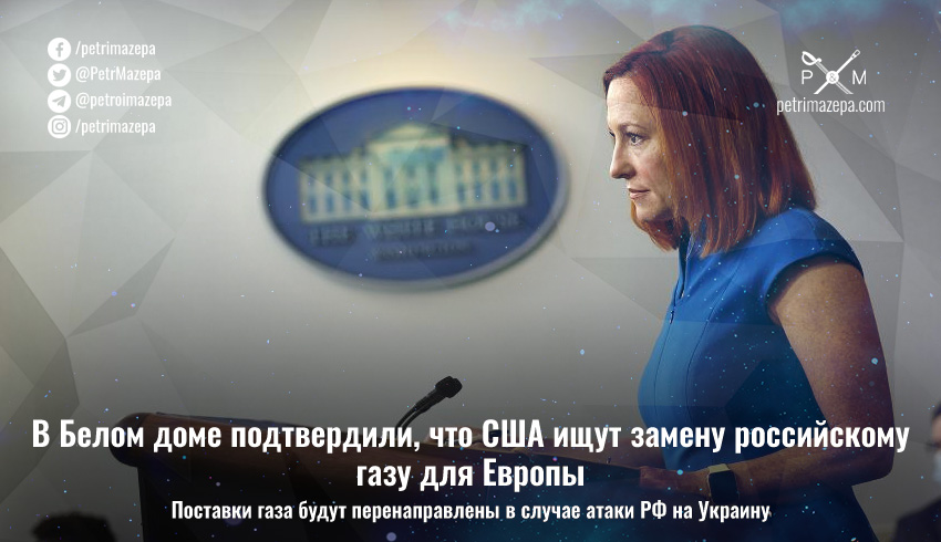 Пресс-секретарь Белого дома Дженнифер Псаки подтвердила, что США переговоры с крупными добытчиками газа и других энергоносителей о том, чтобы перенаправить поставки в Европу в случае, если РФ нападет на Украину.