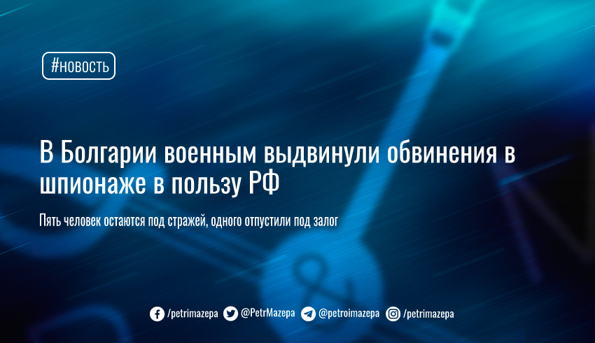 Военная прокуратура Болгарии 18 ноября предъявила обвинение группе бывших и действующих военных в шпионаже в пользу РФ. Шесть человек обвиняются в сборе и передаче засекреченной информации. Они были задержаны еще в марте 2021 года. Сейчас пять человек остаются под стражей, а одного отпустили под залог.
