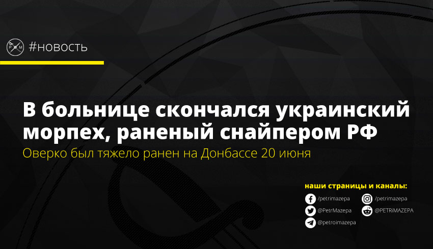 Сегодня ночью в больнице скончался военнослужащий 503-го Отдельного батальона морской пехоты ВМС Украины Константин Оверко. Он был ранен снайпером РФ 20 июня и перенес более 30 сложных операций.