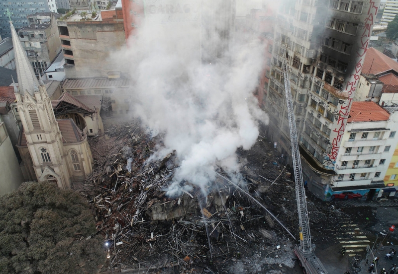 В Бразилии обрушился пылающий небоскреб (фото, видео)