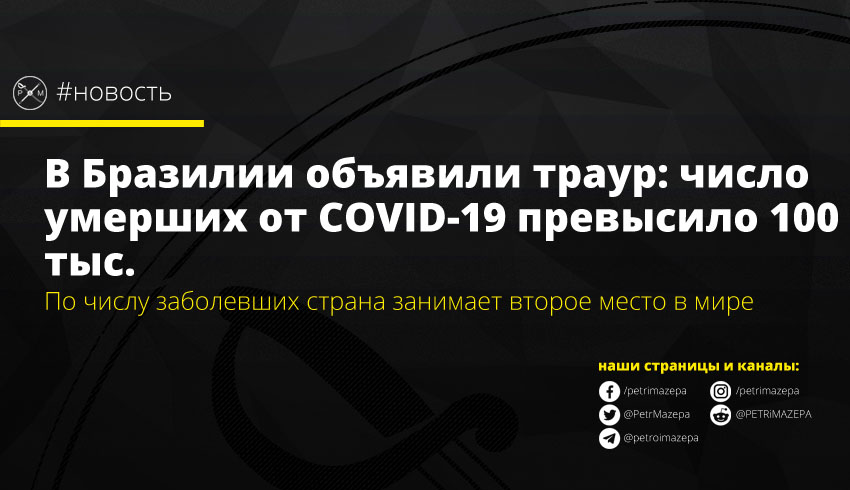 В Бразилии число смертей, связанных с COVID-19, превысило 100 тысяч. Верховный суд Бразилии объявил трехдневный траур в связи с этой трагедией.