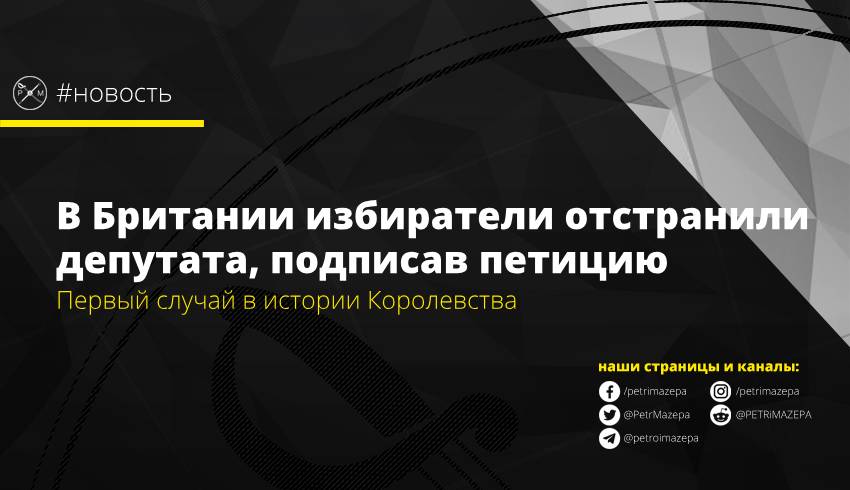 Экс-член парламента Британии Фиона Онасанья, которую приговорили к тюремному заключению, впервые в истории Королевства лишилась места в Палате общин по факту подписания избирателями петиции с просьбой об отзыве у нее депутатского мандата. Документ поддержали 19 261 человек (27,6% избирателей округа, достаточно было и 10%). Тем не менее, у неё останется возможность участвовать в предстоящих перевыборах.