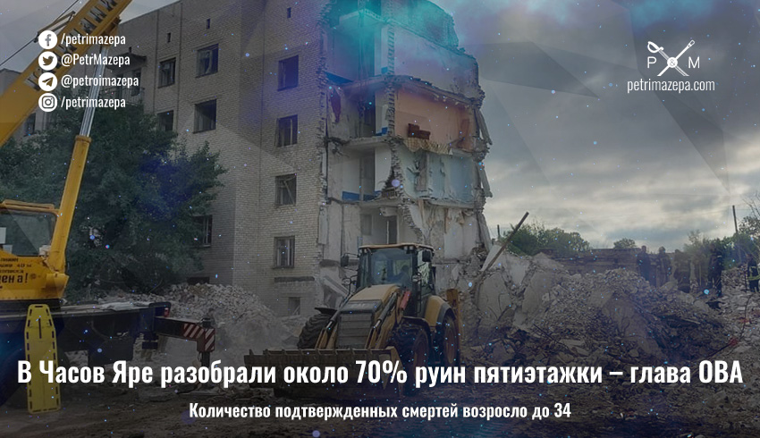 Вже 34 загиблих та 9 поранених дістали рятувальники з-під завалів багатоповерхівки у місті Часів Яр. Серед загиблих —...