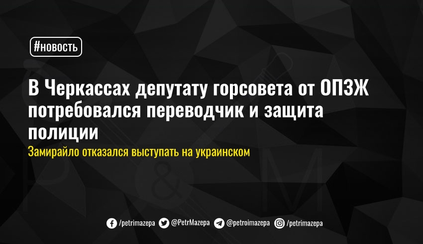 На сессии Черкасского горсовета разгорелся скандал из-за выступления депутата от ОПЗЖ Александра Замирайло. Он отказался выступать на украинском языке, из-за чего ему потребовался переводчик и защита полиции от возмущенных граждан.