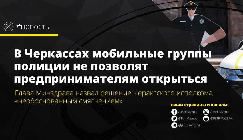 А чтобы предприниматели Черкасс не расслаблялись – в город направлены мобильные группы полиции, которые будут «проводить превентивную работу среди представителей малого и среднего бизнеса». А игнорирующих запрет Кабмина привлекать к административной ответственности по статье 44-3 КУоАП.