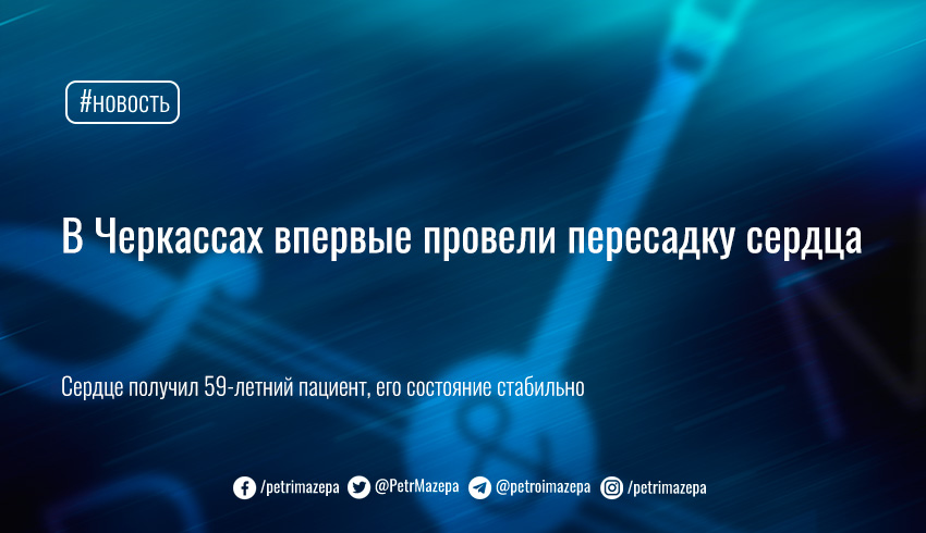 Изъятие сердца, а также почек и печени от одного донора провели в Черкасской городской больнице скорой медицинской помощи. Донор перенес тяжелую черепно-мозговую травму, которая привела к смерти головного мозга. Трансплантация стала возможной после согласия его родственников. Подбор пар «донор-реципиент» осуществили через Единую государственную информационную систему трансплантации.