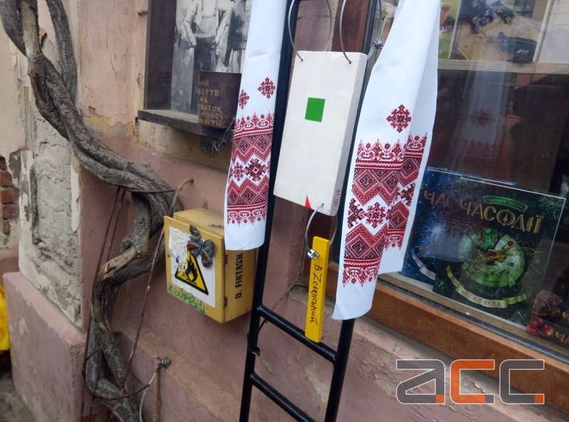 В Черновцах появился концептуальный памятник новоизбранному президенту нашей страны Владимиру Зеленскому. Объект размещен на витрине книжного магазина «Букинист» по улице Главной. К стритарту приложил руку местный любитель эпатажа и художник Анатоль Федирко. Присутствует в инсталляции и олигарх Игорь Коломойский.