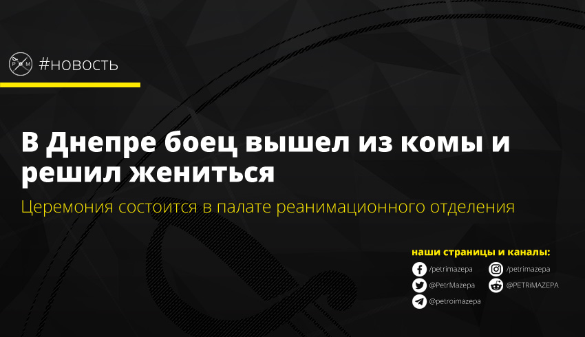 В Днепре в больнице им. Мечникова военный решил жениться сразу после того, как вышел из комы. Пару распишут в отделении реанимации, как только, как комиссия признает дееспособность мужчины.