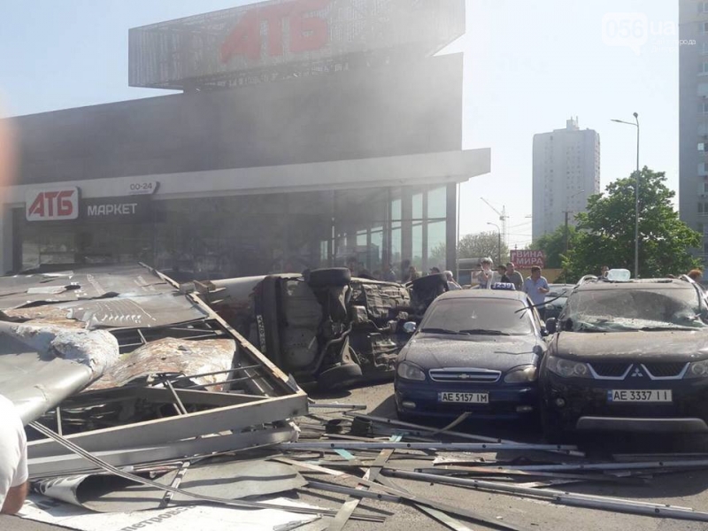 По предварительным данным Патрульной полиции, у фуры, которая спускалась вниз по улице Космической, отказали тормоза и она на большой скорости покатилась вниз, врезалась в рекламный борд, повредила несколько машин, припаркованных рядом, и вломилась в супермаркет АТБ. Фура была загружена металлическими трубами, которые рассыпались у супермаркета. Водитель в тяжелом состоянии находится в больнице.