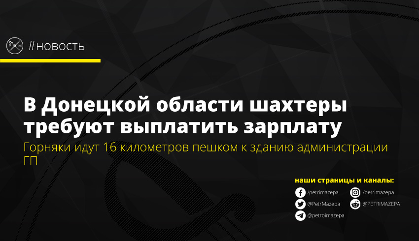 В Донецкой области около 100 работников шахты «Курахівська» идут из города Горняк в Селидово к зданию объединения ГП «Селидіввугілля». Расстояние, которое нужно преодолеть горнякам составляет около 16-ти км. Так они обращают внимание на существующую задолженность по зарплате и требуют провести выплаты.