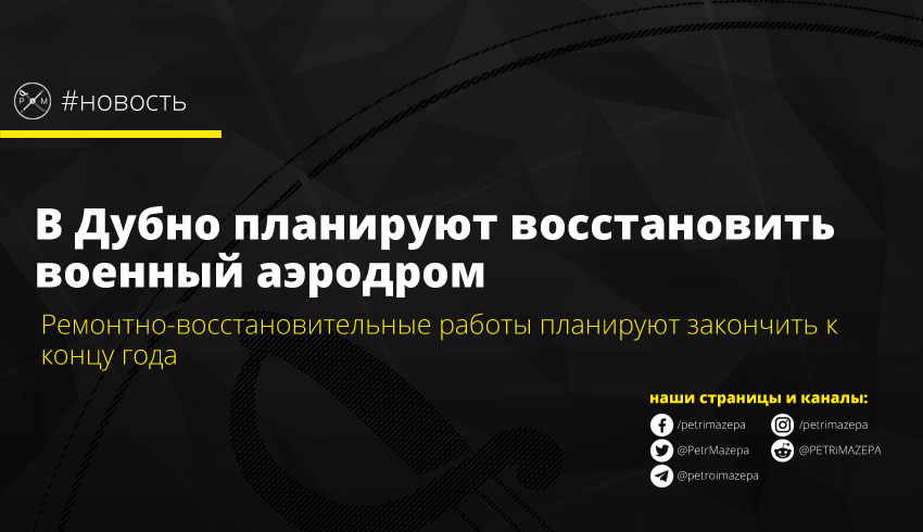 ВСУ получат в распоряжение еще один аэродром оперативного назначения – «Дубно» (расположен в Ровенской области). По словам специалистов логистики Командования Воздушных сил, еще предстоит провести немало ремонтно-восстановительных работ. Их планируют закончить к концу 2020 года.