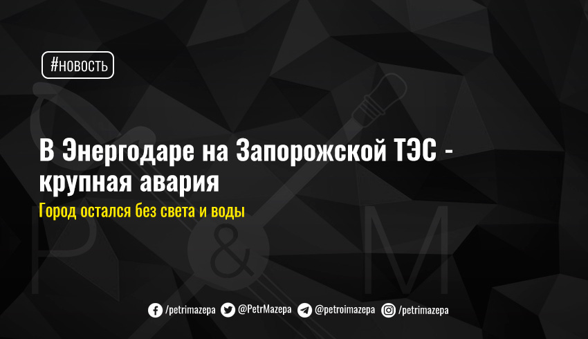 В Энергодаре на Запорожской ТЭС произошла авария, в результате которой пятидесятитысячный город и округа остались без электроэнергии и водоснабжения.