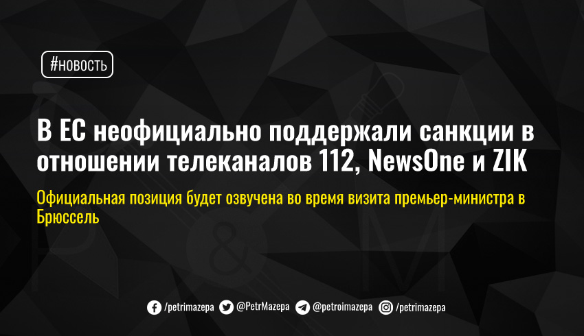 Глава представительства Украины при ЕС Мыкола Точицкий сообщил, что в Евросоюзе позитивно оценили принятие решения о введении санкций в отношении телеканалов «112 Украина», «NewsOne» и «ZIK». Но пока – неофициально.