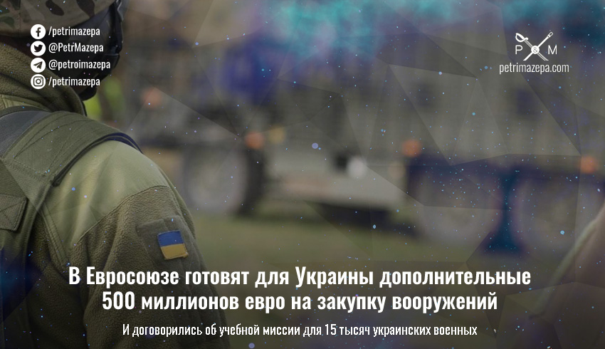 Сегодня, 17 октября, главы МИД стран-членов Евросоюза готовятся одобрить в Люксембурге план предоставления Украине дополнительных 500 миллионов евро на закупку вооружений и боеприпасов. А также — организацию учебной миссии для украинских военнослужащих в странах ЕС.
