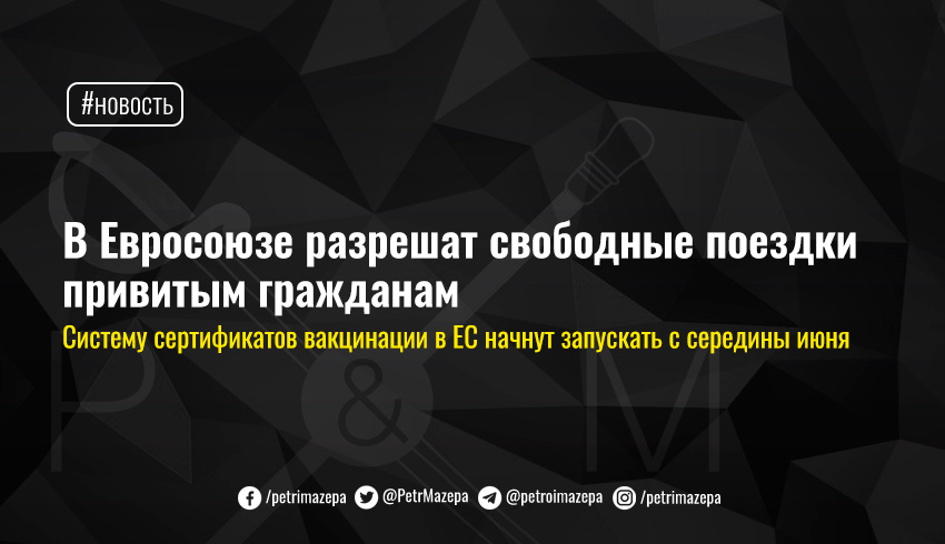 С середины июня начнет запускаться система сертификатов вакцинации в ЕС. В полном объеме она должна заработать к 1 июля.