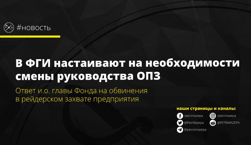 Он настаивает на том, что это нормальная практика, когда «государство усиливает свое влияние на подчиненные ей предприятия, в том числе путем смены руководства, если оно не справляется с возложенными на него обязанностями». Также, согласно мнению и.о главы ФГИ, менеджмент ОПЗ «воспользовался несовершенством процедур корпоративного управления» и не сообщил Фонду как органу управления о проведении конкурса по отбору давальца, предложениях участников и его результаты.