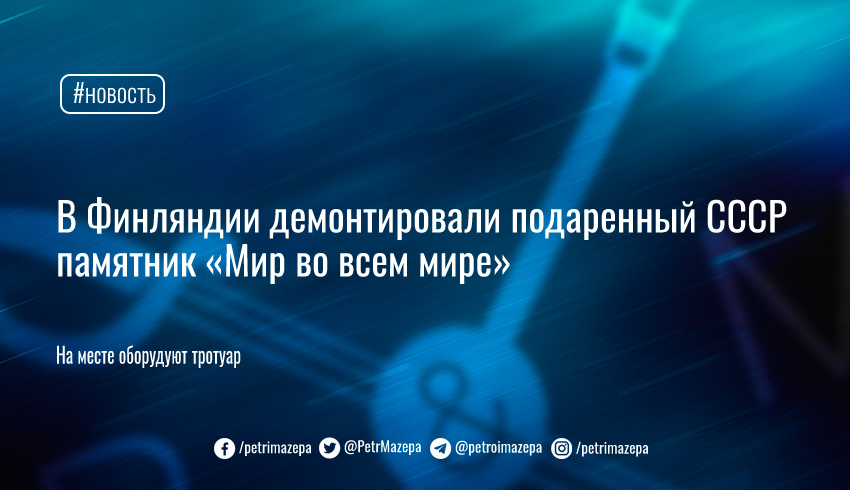 В столице Финляндии был убран полученный в подарок от СССР в 1989 году памятник «Мир во всем мире». Для общественности его открыли в 1990 году. Уже тогда памятник вызвал множество дискуссий.