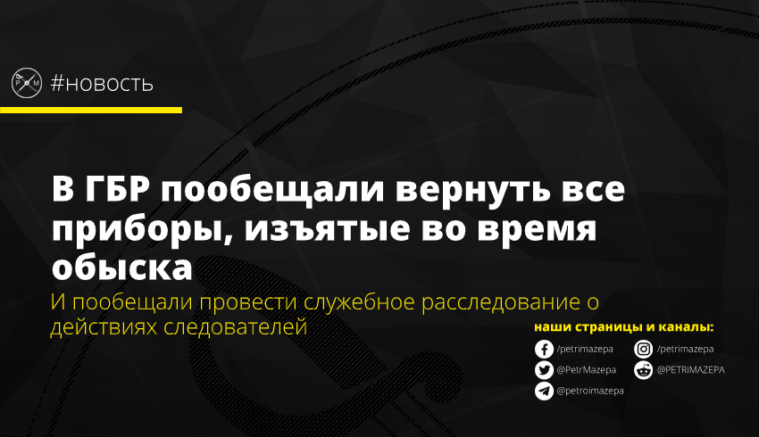 В ГБР пообещали вернуть все приборы, изъятые во время обыска