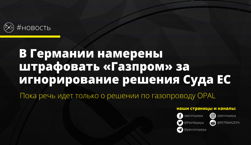 В Германии намерены штрафовать «Газпром» за игнорирование решения Суда ЕС