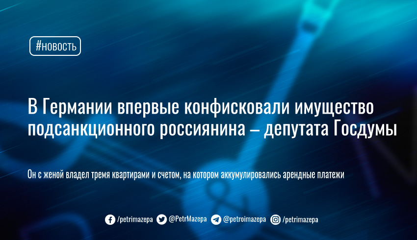 Прокуратура Мюнхена и Федеральное управление криминальной полиции конфисковали три квартиры в Мюнхене, которые принадлежали депутату нелегитимной Госдумы и его супруге. Также конфискован счет, на который поступали арендные платежи за пользование этими квартирами.