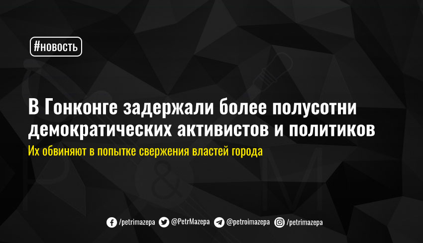 Спецслужбы Гонконга провели массовый рейд, в результате которого были задержаны 53 человека – демократические активисты и политики. Их обвиняют в попытке свержения местных властей из-за проведения неофициального голосования по выбору оппозиционного кандидата на местных выборах.