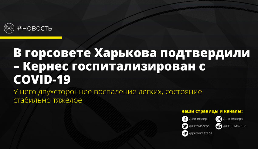 Городской голова Харькова Геннадий Кернес госпитализирован с COVID-19, у него двухсторонне воспаление легких, состояние стабильно тяжелое, сроки выздоровления врачи пока не прогнозируют.