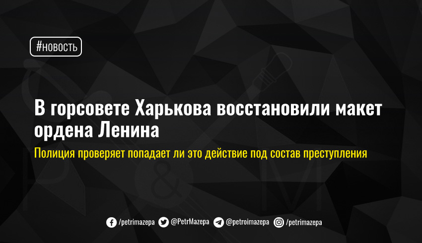 Полиция начала проверку по факту восстановления макета ордена Ленина в холле Харьковского городского совета. По данным общественных активистов, макет появился в холле здания горсовета.