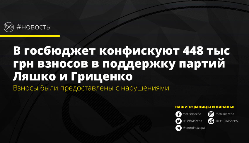 В госбюджет конфискуют 448 тыс грн взносов в поддержку партий Ляшко и Гриценко