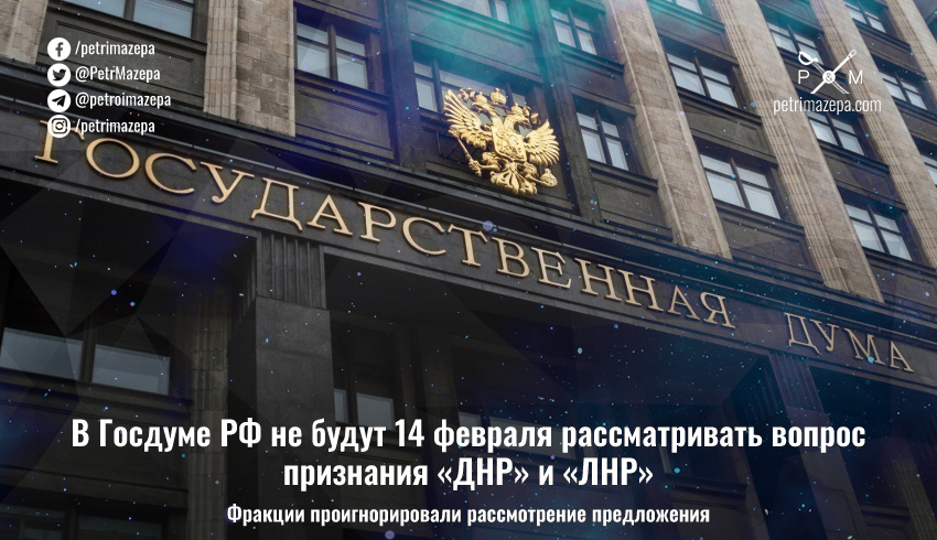 В Госдуме РФ не будут 14 февраля рассматривать вопрос признания «ДНР» и «ЛНР»