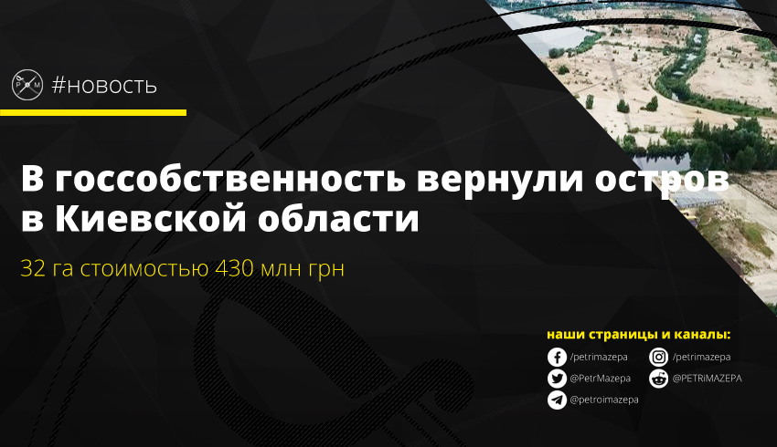 В госсобственность вернули остров площадью 32 га, который расположен на реке Козинка на территории Украинского городского совета Обуховского района Киевской области. Его оценочная стоимость составляет около 433 миллионов гривен.