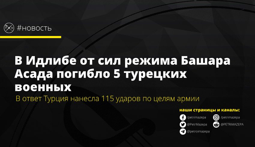 В результате артобстрела сил режима Башара Асада в Идлибской зоне деэскалации погибли пятеро турецких военнослужащих, еще пять получили ранения. В ответ Вооруженные силы Турции нанесли удары по 115 целям армии режима Башара Асада. По предварительным данным, нейтрализован 101 военный сил дамасского режима.