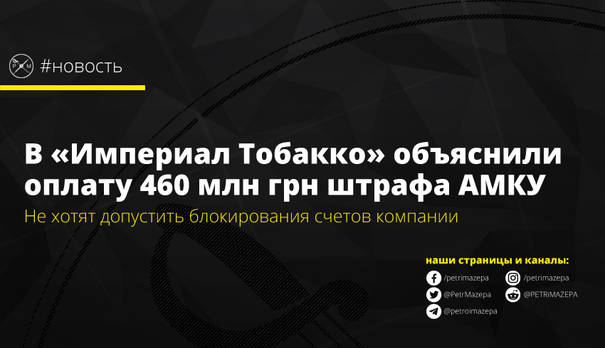 В «Империал Тобакко» объяснили оплату 460 млн грн штрафа АМКУ
