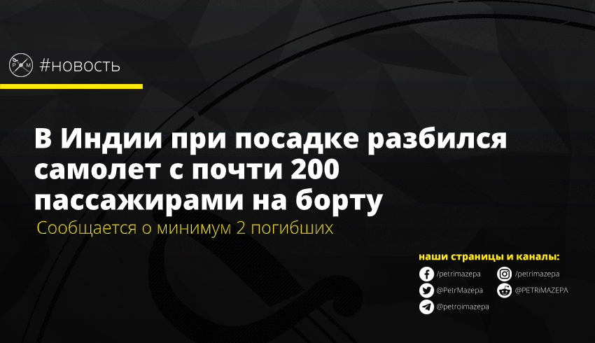 В Индии при посадке в аэропорту возле города Кожикоде вылетел с взлетно-посадочной полосы и разбился самолет, летевший из Дубаев, на борту которого находилось 190 человек. На данный момент сообщается о 2 погибших в результате катастрофы.