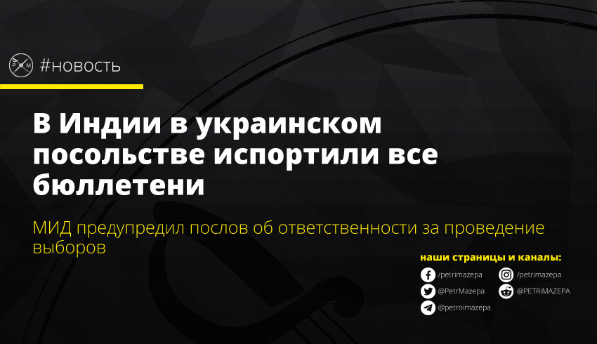 Сегодня стало известно, что в Индии украинцы могут не иметь возможности проголосовать на парламентских выборах, которые пройдут завтра. Все бюллетени оказались испорчены по вине посольства.
