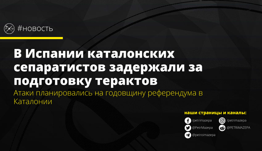 Испанская полиция задержала девять человек по подозрению в подготовке терактов в годовщину референдума о независимости Каталонии. Задержанные являются сепаратистами из «Комитета защиты республики» (CDR), они и ранее проводили акции протеста, но ранее они не прибегали к насилию.