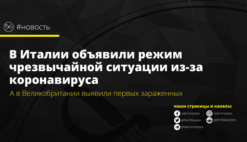 Китайский коронавирус продолжает распространятся. Первые случаи заболевания атипичной пневмонией, подтвердили в Британии. А в Италии объявили шестимесячную чрезвычайную ситуацию в связи с рисками для здоровья граждан.