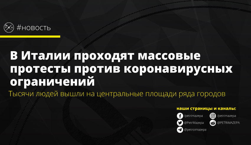 По всей Италии прошли протесты против жестких ограничений, введенных с целью противодействия распространения коронавируса. Тысячи людей вышли на площади разных городов.