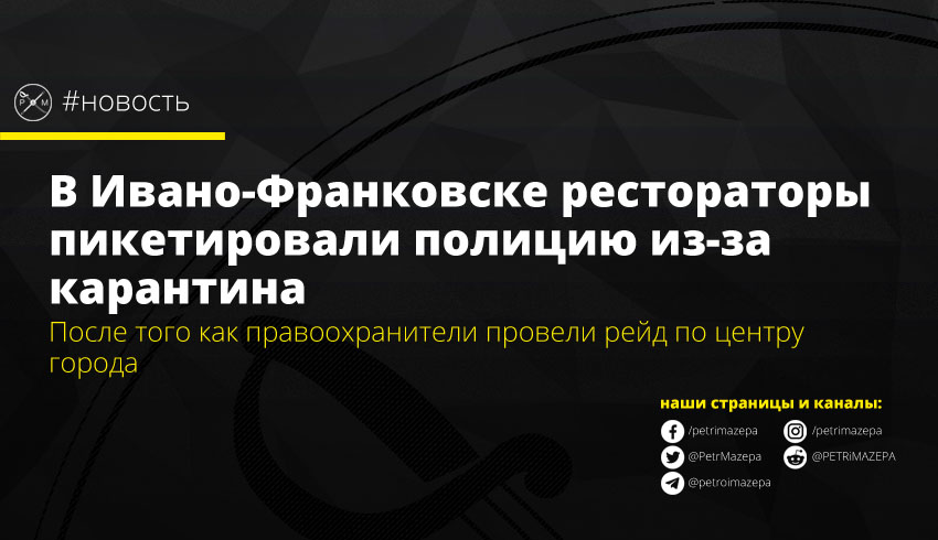 В Ивано-Франковске рестораторы провели пикет под зданием областной полиции, и обещают собрать подписи для коллективного обращения – чтобы полиция «позволила предпринимателям кормить свои семьи и платить зарплаты работникам». Ранее правоохранители устроили рейд по центру города, чтобы закрыть кофейни, рестораны, кинотеатры и не продуктовые магазины.