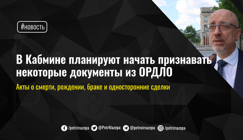 Министр реинтеграции Алексей Резников в интервью изданию «Право Украины» рассказал, что в Кабинете министров Украины предлагают начать учитывать некоторые документы ОРДЛО еще до деоккупации Донбасса.