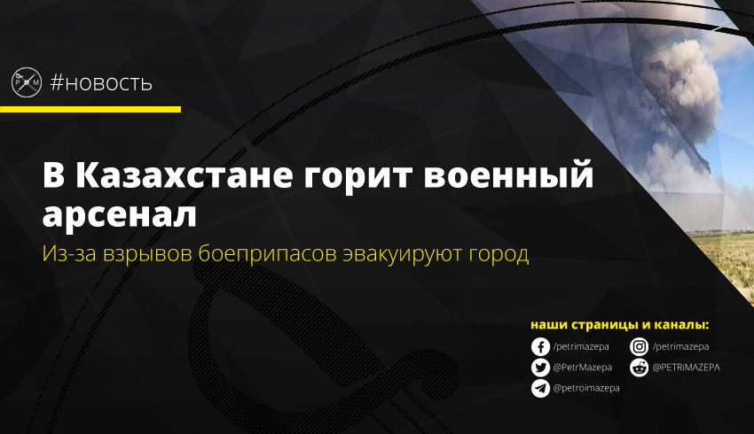 В Казахстане на одном из военных арсеналов, расположенном рядом с населенным пунктом Арысь произошло возгорание, повлекшее за собой взрывы боеприпасов. Пока жертв нет.