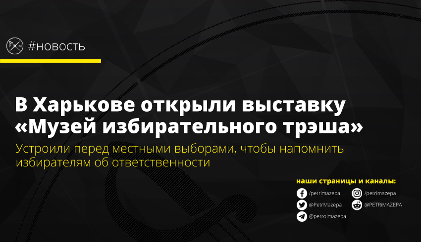 Харьковский центр общественного движения ЧЕСТНО в партнерстве с «Суспільним» организовал выставку вещей, которыми украинские политики во время выборов пытались подкупить избирателей. Организаторы этой выставки говорят, что устроили ее, чтобы незадолго до местных выборов, чтобы напомнить людям об ответственности во время избирательной кампании.