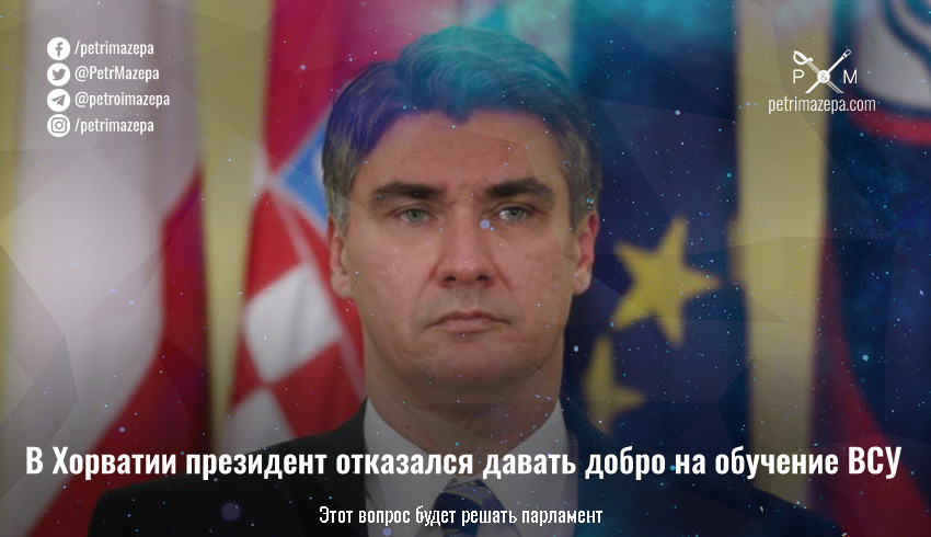 Хорватский президент Зоран Миланович отказался подписывать документ, предварительно разрешающий армейским инструкторам вооруженных сил страны принимать участие в обучающей миссии Евросоюза для ВСУ (EUMAM). Цель EUMAM – укрепление военного потенциала ВСУ. Миссия ЕС уполномочена проводить индивидуальное, коллективное и специализированное обучение до 15 000 военнослужащих в различных местах на территориях государств-членов ЕС. Создана в середине октября 2022 года.