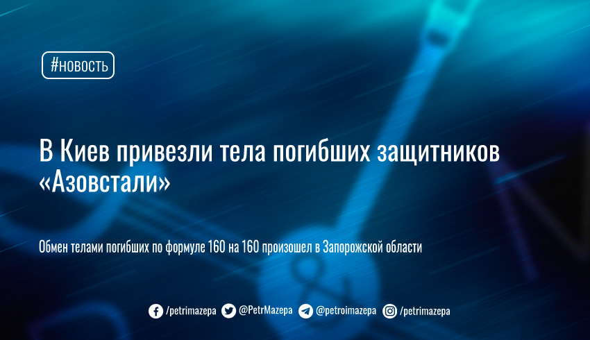 В Киев уже прибыли тела погибших защитников «Азовстали», полученные в рамках обмена между Украиной и Россией «160 на 160». Около трети из них — останки бойцов полка «Азов». На данный момент продолжается идентификация для установления личностей.