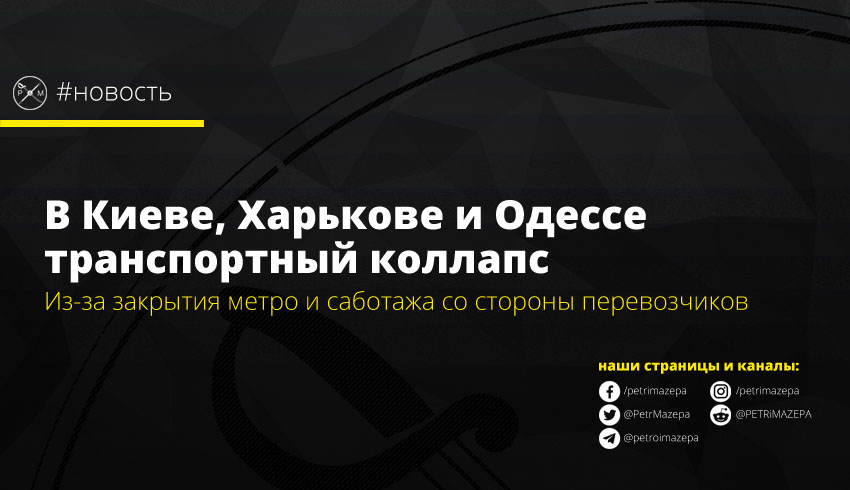 В Киеве, Харькове и Одессе ограничения на перевозки спровоцировали транспортный коллапс. В Киеве из-за закрытия метро в очередях и в маршрутках давки, на дорогах масштабные пробки, аналогичная ситуация наблюдается в Харькове. В Одессе же транспортный коллапс был спровоцирован саботажем со стороны перевозчиков – некоторые не вывели на линии более половины своих маршруток.